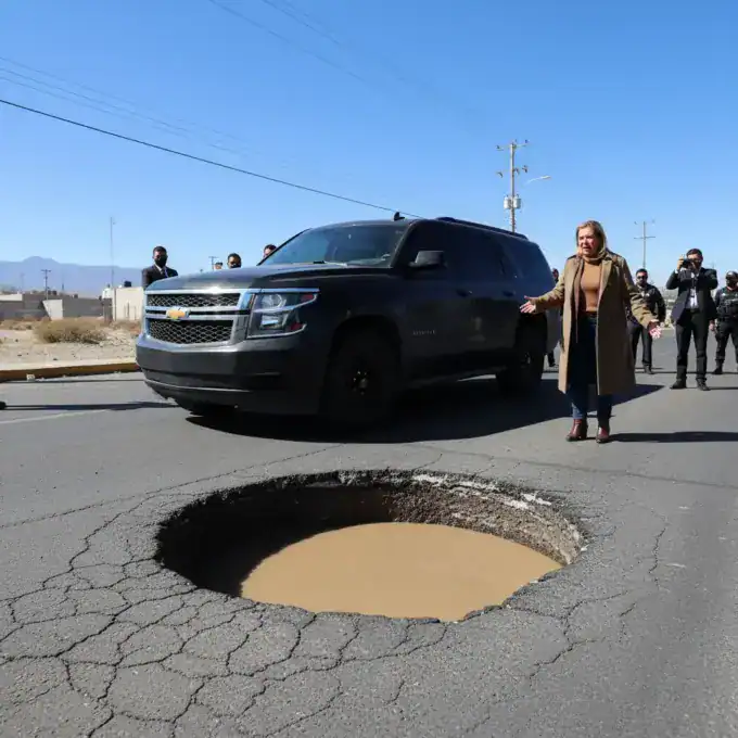 Chihuahua Governor Maru Campos's SUV suffered a flat tire after hitting a huge pothole in Ciudad Juarez. She then took to social media...